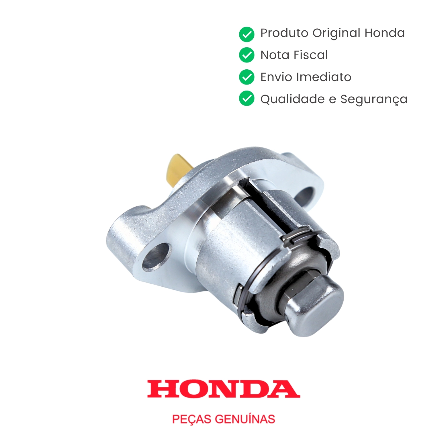 O acionador do tensor da corrente de comando original Honda é responsável por manter a tensão correta da corrente, garantindo funcionamento silencioso, desempenho ideal do motor e maior durabilidade dos componentes internos. Peça genuína Honda, com padrão de fábrica e encaixe preciso.