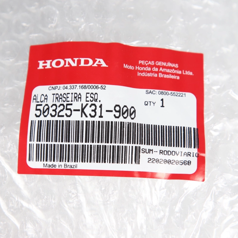 A alça traseira lado esquerdo original Honda é a peça responsável por auxiliar no apoio do passageiro, facilitar a movimentação da motocicleta e complementar o acabamento traseiro com segurança e resistência. Produzida conforme o padrão original de fábrica, garante excelente durabilidade, encaixe perfeito e preserva a originalidade da motocicleta, sem necessidade de adaptações.