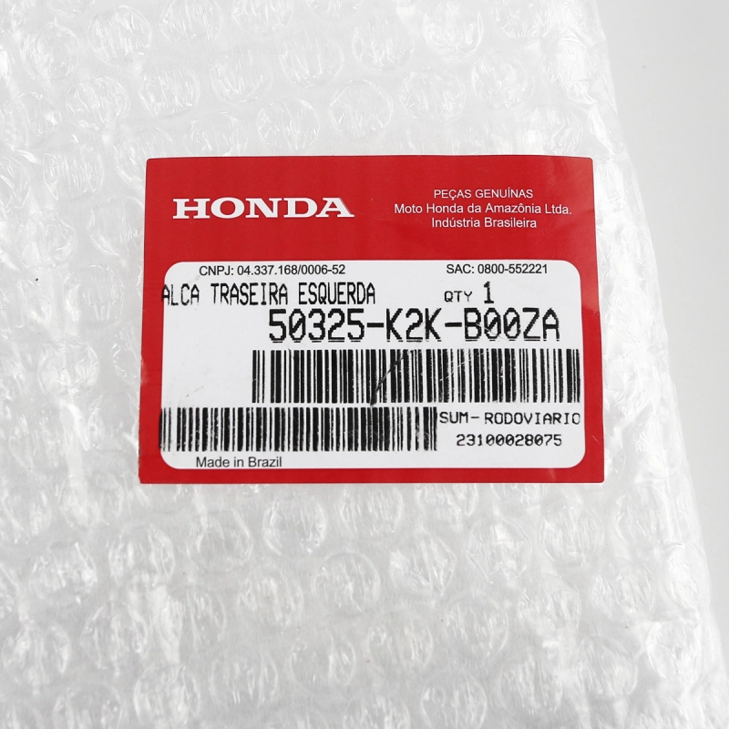 A alça traseira lado esquerdo original Honda é a peça responsável por auxiliar no apoio do passageiro, facilitar a movimentação da motocicleta e compor o acabamento traseiro com segurança e resistência. Produzida conforme o padrão original de fábrica, garante excelente durabilidade, encaixe perfeito e preserva a originalidade da motocicleta, sem necessidade de adaptações.