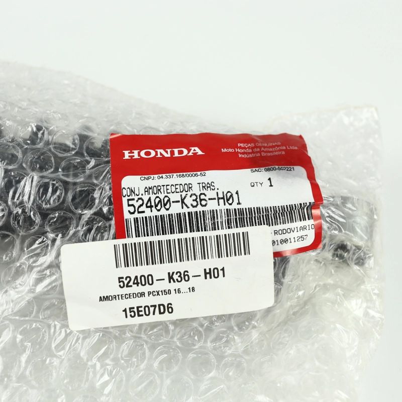 O amortecedor traseiro original Honda é responsável por absorver os impactos da suspensão traseira, garantindo conforto, estabilidade e segurança durante a condução da motocicleta. Produzido conforme o padrão original de fábrica, assegura funcionamento correto do conjunto, encaixe perfeito no chassi e preserva a dirigibilidade original, sem necessidade de adaptações.