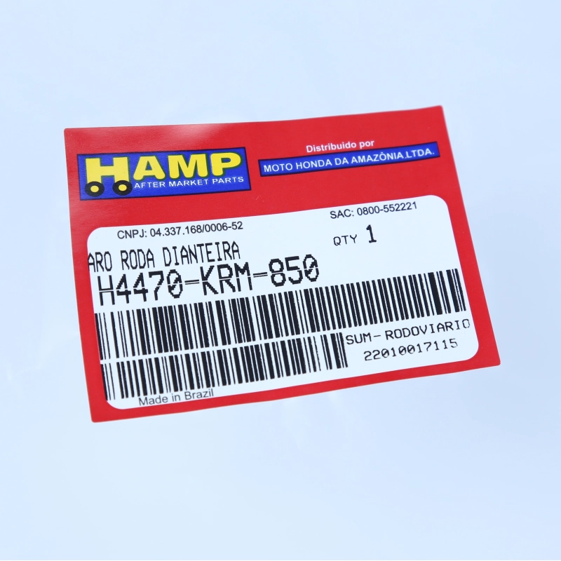 O aro de roda dianteira Original Honda HAMP é desenvolvido para garantir resistência, estabilidade e segurança na pilotagem. Produzido conforme o padrão de fábrica, proporciona excelente durabilidade, encaixe perfeito e acabamento original.