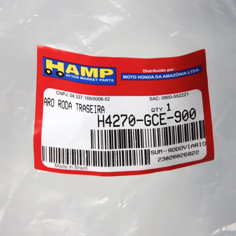 O aro de roda traseira Original Honda HAMP é responsável por garantir resistência, estabilidade e segurança na rodagem da motocicleta. Fabricado conforme o padrão de fábrica, proporciona excelente durabilidade e encaixe perfeito, mantendo a originalidade do conjunto da roda.