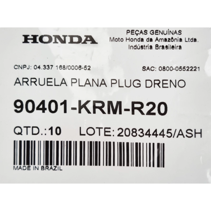 Arruela do Bujao de Oleo 12mm CG 150 CBX 250 CB 300 Original Honda
