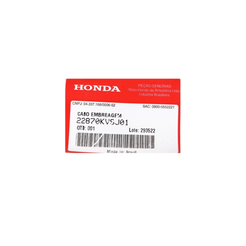 Cabo de embreagem original Honda, desenvolvido para garantir acionamento suave, precisão no engate e maior durabilidade do sistema de embreagem da linha CG. Fabricado conforme o padrão de fábrica, oferece flexibilidade ideal e resistência superior, assegurando o desempenho original da motocicleta.