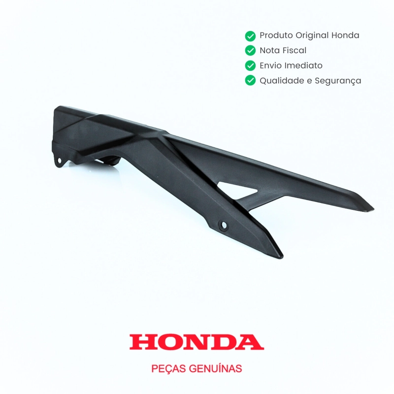 A capa de corrente original Honda foi desenvolvida para proteger o sistema de transmissão da motocicleta, reduzindo o contato com a corrente em movimento, evitando o acúmulo de sujeira e contribuindo para maior durabilidade do conjunto.