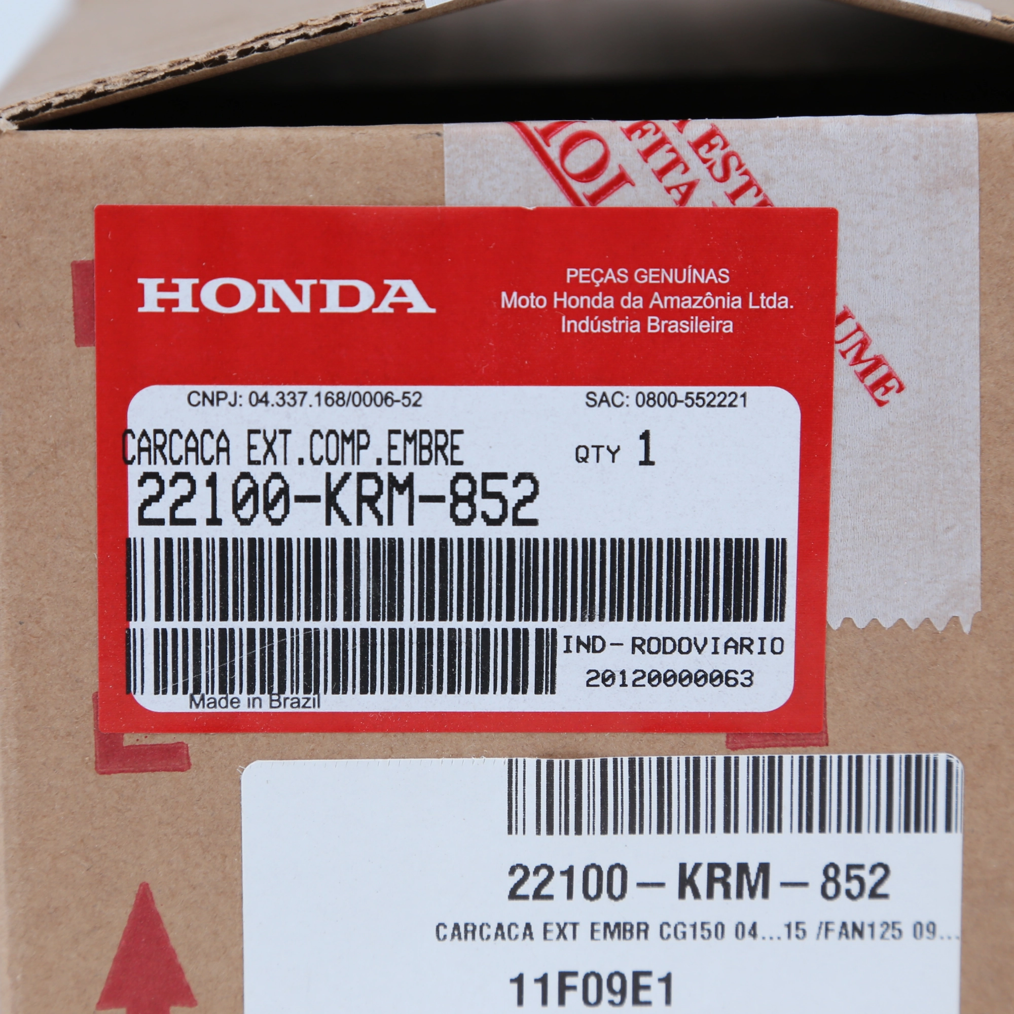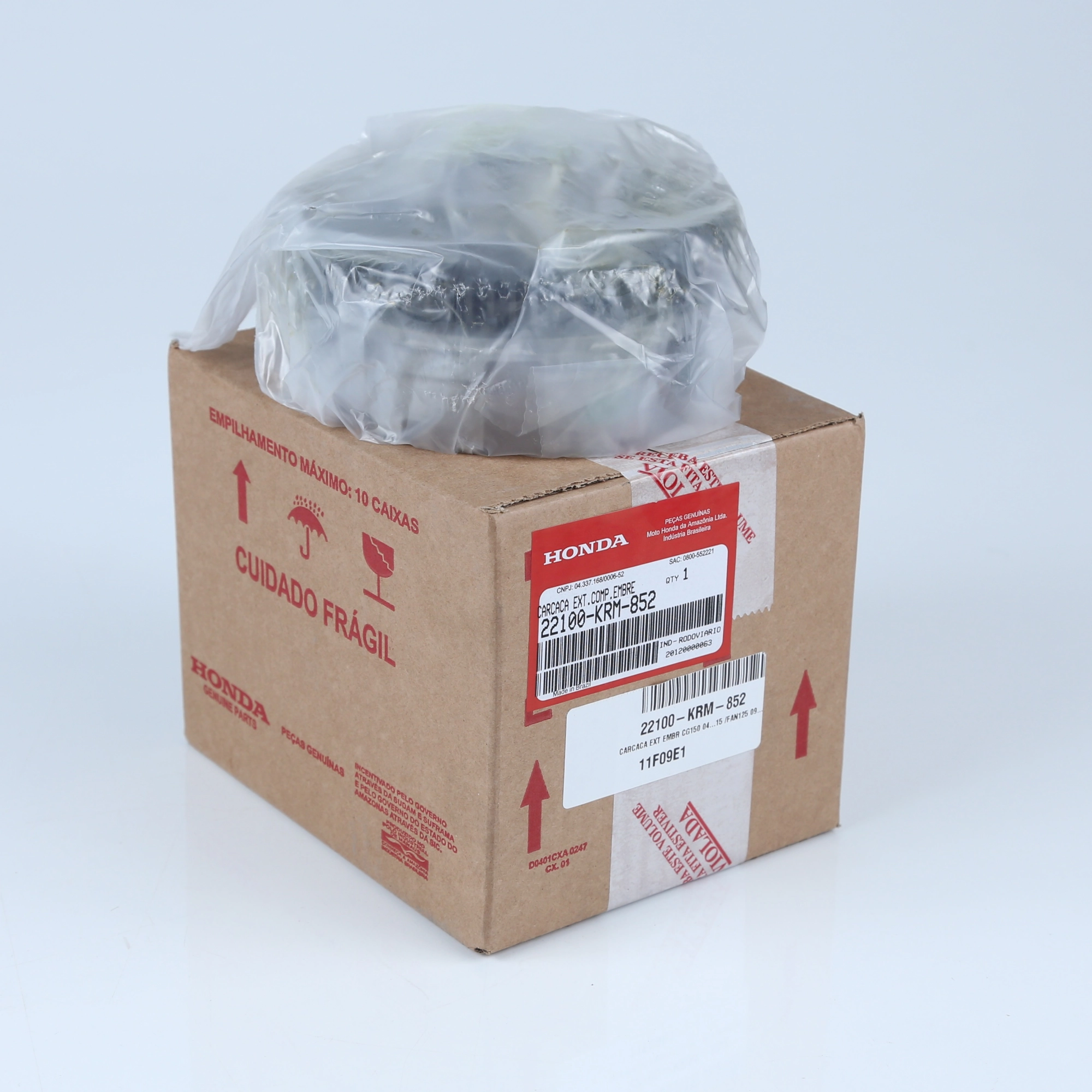 Carcaça externa da embreagem, conhecida como campana, original Honda. Responsável por abrigar o conjunto de embreagem e garantir o alinhamento e o funcionamento correto do sistema. Fabricada com material de alta resistência e padrão de fábrica, oferece encaixe perfeito e durabilidade superior.