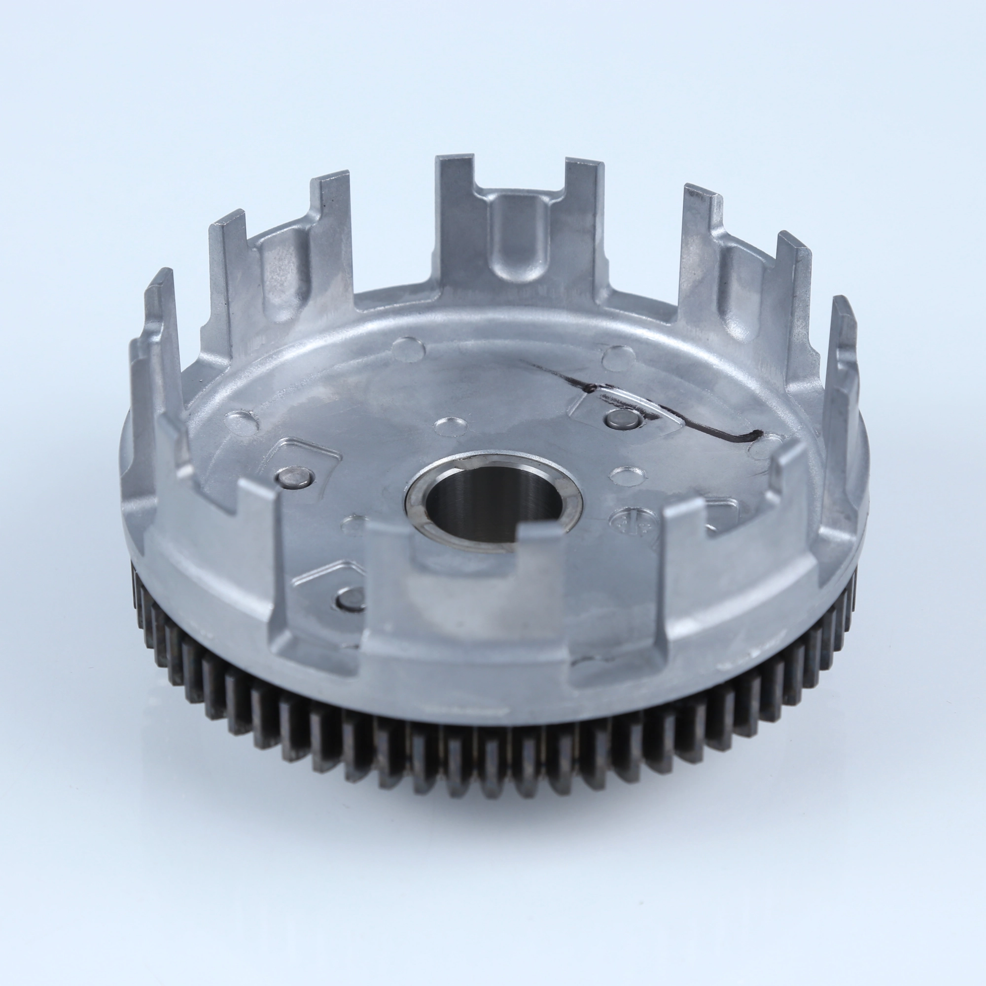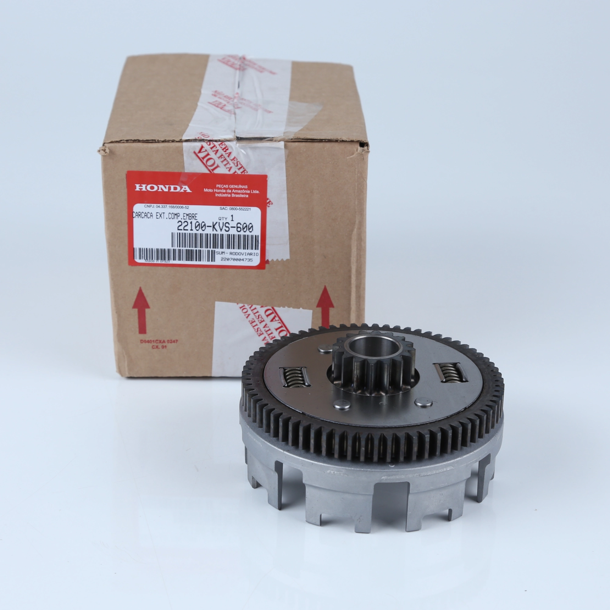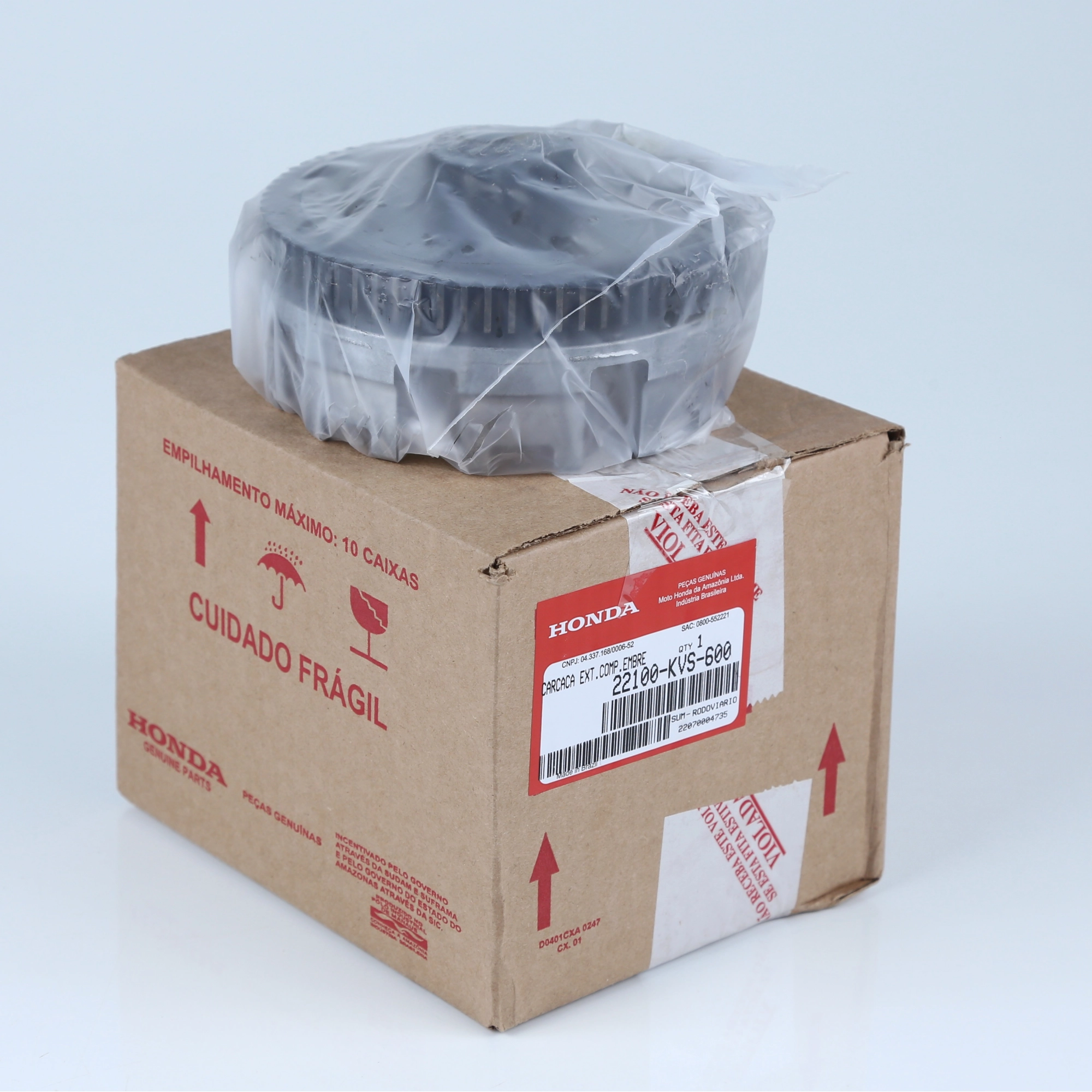 Carcaça externa da embreagem, conhecida também como campana, original Honda. Peça responsável por proteger e alinhar o conjunto da embreagem, garantindo funcionamento correto, durabilidade e segurança. Produzida conforme padrão de fábrica, com encaixe perfeito e alta resistência para uso diário.