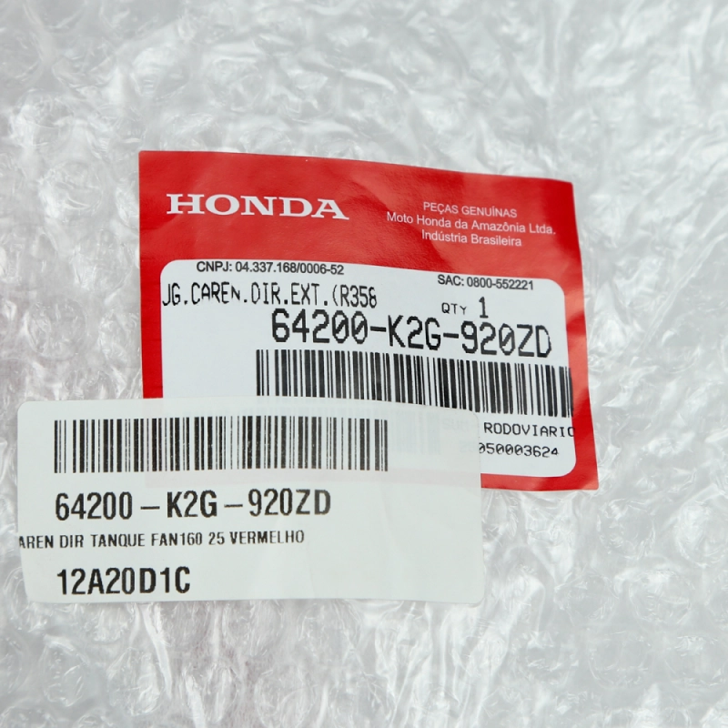 A carenagem lateral do tanque é uma peça essencial para o acabamento e proteção da motocicleta, garantindo o visual original de fábrica. Produzida com padrão genuíno Honda e pintura Vermelho Marrakesh Perolizado, oferece encaixe perfeito, alta durabilidade e mantém a estética e valorização da moto.