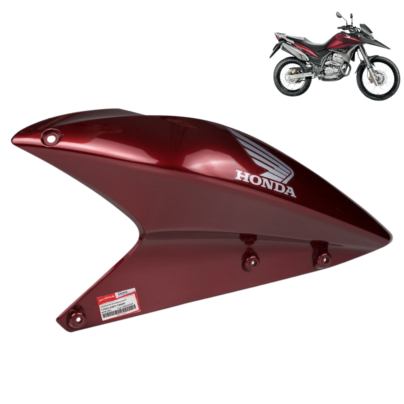 A carenagem direita do tanque original Honda tem a função de proteger o tanque de combustível e compor o acabamento lateral da motocicleta, mantendo o design e a aerodinâmica conforme o padrão de fábrica. Fabricada com material de alta resistência, oferece encaixe perfeito, excelente durabilidade e acabamento original, sem necessidade de adaptações.