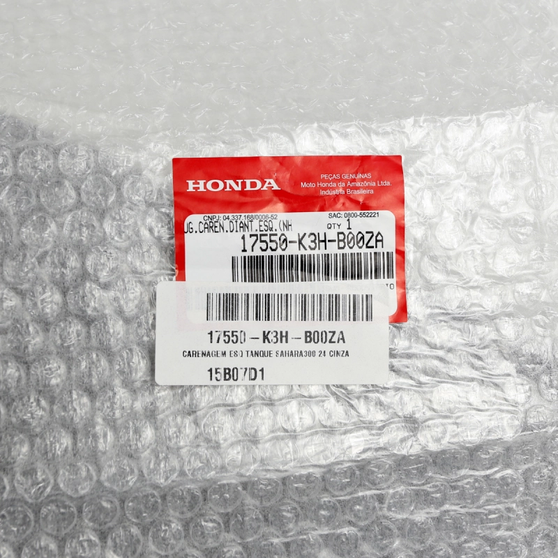 A carenagem esquerda do tanque original Honda tem a função de proteger o tanque de combustível e compor o acabamento lateral da motocicleta, mantendo o design e a aerodinâmica conforme o padrão de fábrica. Fabricada com material de alta resistência, oferece encaixe perfeito, excelente durabilidade e acabamento original, sem necessidade de adaptações.