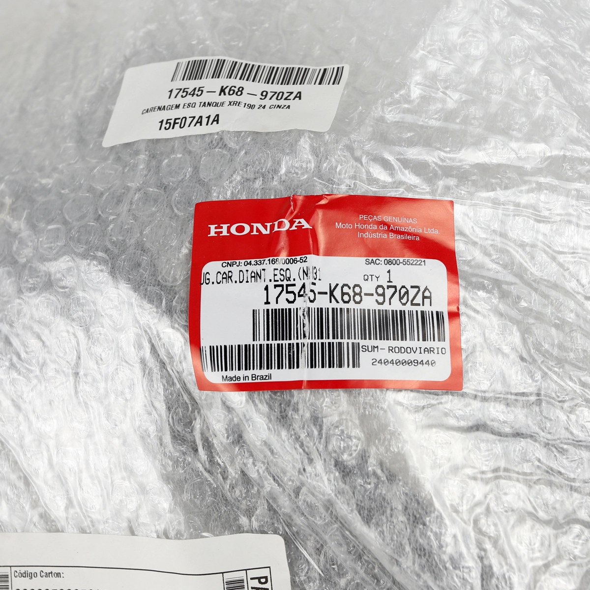 A carenagem esquerda do tanque original Honda tem a função de proteger o tanque de combustível e compor o acabamento lateral da motocicleta, mantendo o design e a aerodinâmica conforme o padrão de fábrica. Fabricada com material de alta resistência, oferece encaixe perfeito, excelente durabilidade e acabamento original, sem necessidade de adaptações.