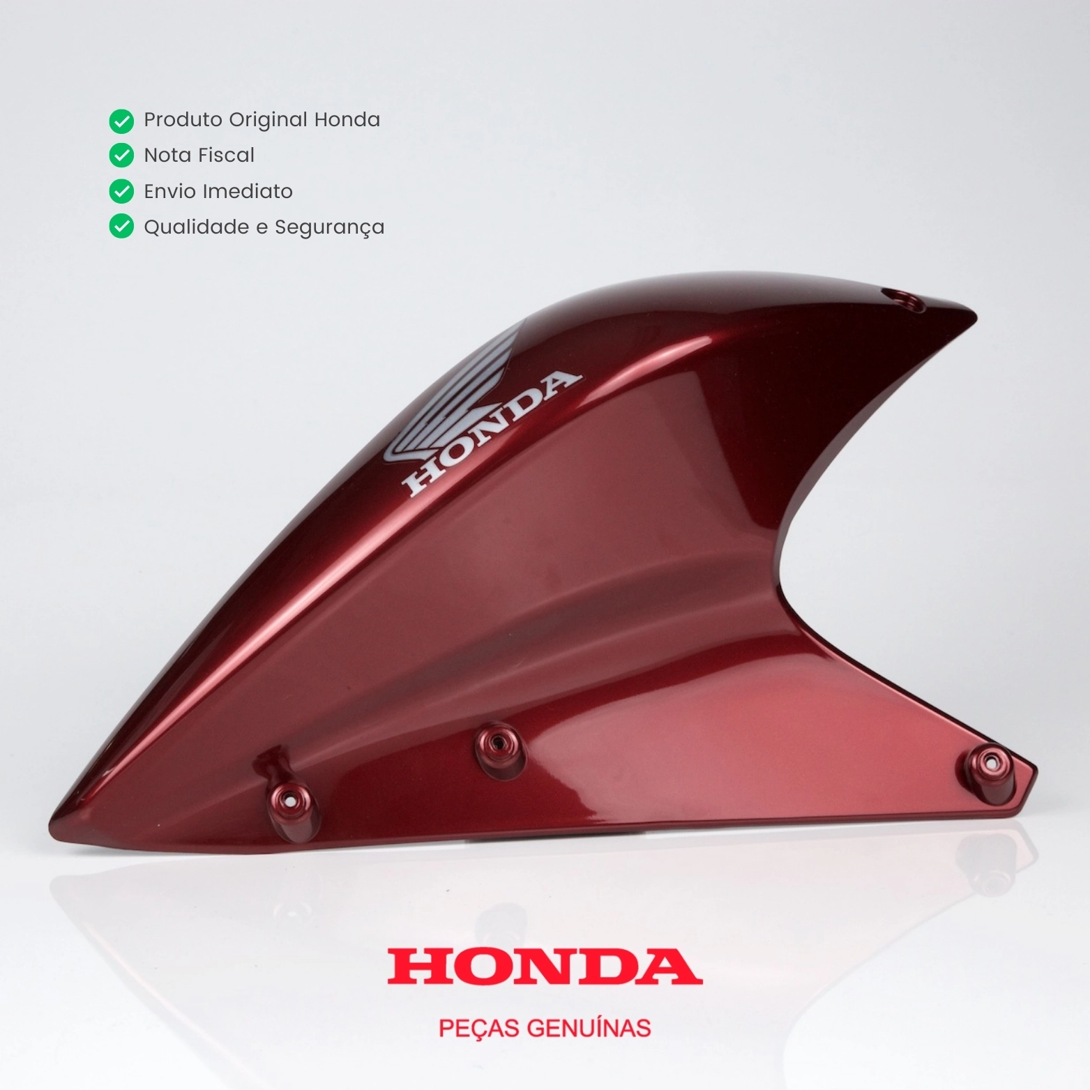 A carenagem esquerda do tanque original Honda tem a função de proteger o tanque de combustível e compor o acabamento lateral da motocicleta, mantendo o design e a aerodinâmica conforme o padrão de fábrica. Fabricada com material de alta resistência, oferece encaixe perfeito, excelente durabilidade e acabamento original, sem necessidade de adaptações.