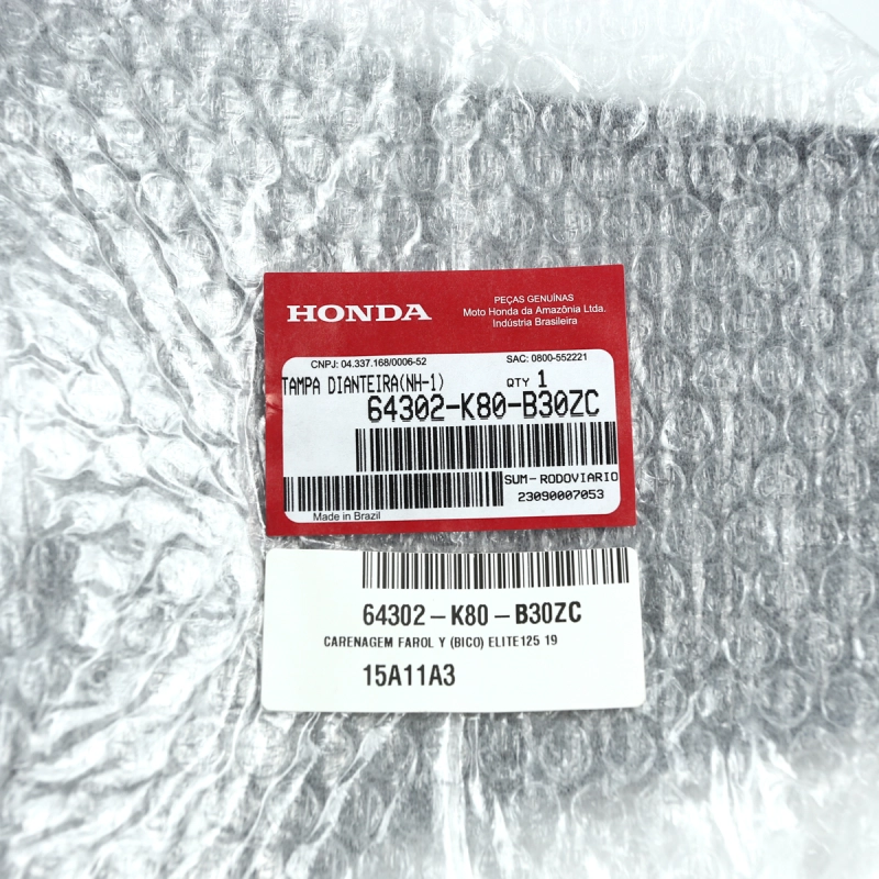 A carenagem do farol da Honda Elite 125 é uma peça original desenvolvida para garantir o perfeito acabamento frontal da motocicleta, além de proteger o conjunto óptico contra impactos e agentes externos. Produzida com materiais de alta qualidade, mantém o padrão estético, durabilidade e encaixe exato de fábrica.