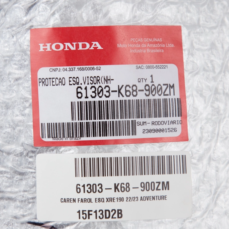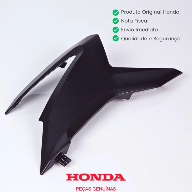 Peça genuína Honda utilizada no acabamento lateral do conjunto do farol, conhecida como bananinha. Possui pintura original Cinza Crow Fosco Metálico, garantindo encaixe perfeito, alinhamento correto e acabamento idêntico ao padrão de fábrica da motocicleta.