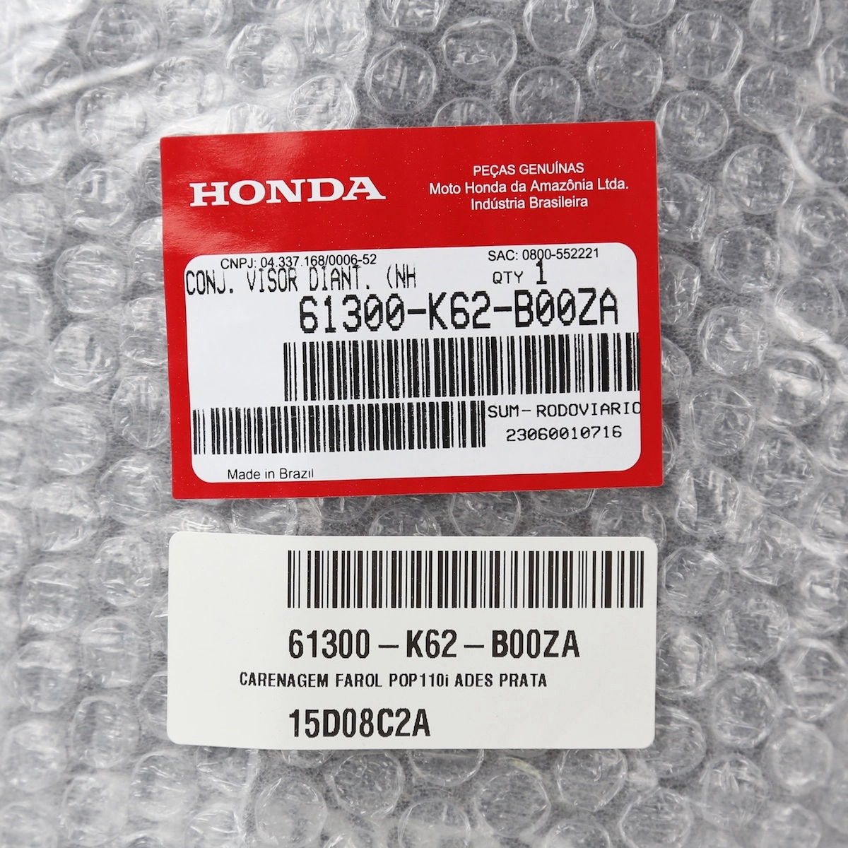 A Carenagem do Farol Adesivo Original Honda é responsável por proteger e dar acabamento ao conjunto do farol, mantendo a estética, a segurança e a originalidade da motocicleta.
