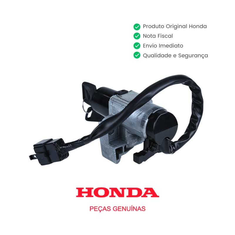 O contato da chave de ignição original Honda com conector de 4 fios é responsável pelo acionamento correto do sistema elétrico da motocicleta, garantindo funcionamento seguro, confiável e dentro dos padrões originais de fábrica. Produzido com material de alta qualidade, oferece encaixe preciso e excelente durabilidade, sem necessidade de adaptações.