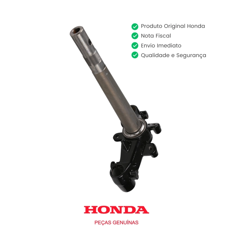 A coluna de direção inferior original Honda é responsável por garantir alinhamento, estabilidade e segurança no sistema de direção da motocicleta. Desenvolvida para a linha Biz, mantém a dirigibilidade original de fábrica, proporcionando condução segura, firme e precisa.