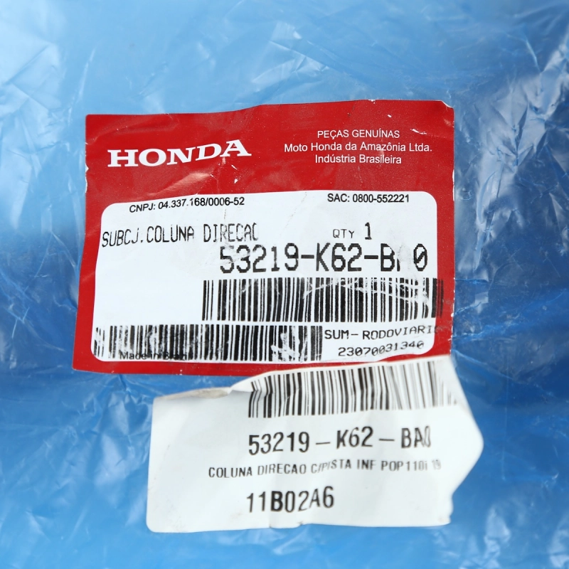 A coluna de direção inferior original Honda é responsável por garantir alinhamento, estabilidade e segurança no sistema de direção da motocicleta. Desenvolvida para a POP 110, mantém a dirigibilidade original de fábrica, proporcionando condução segura, precisa e confortável.