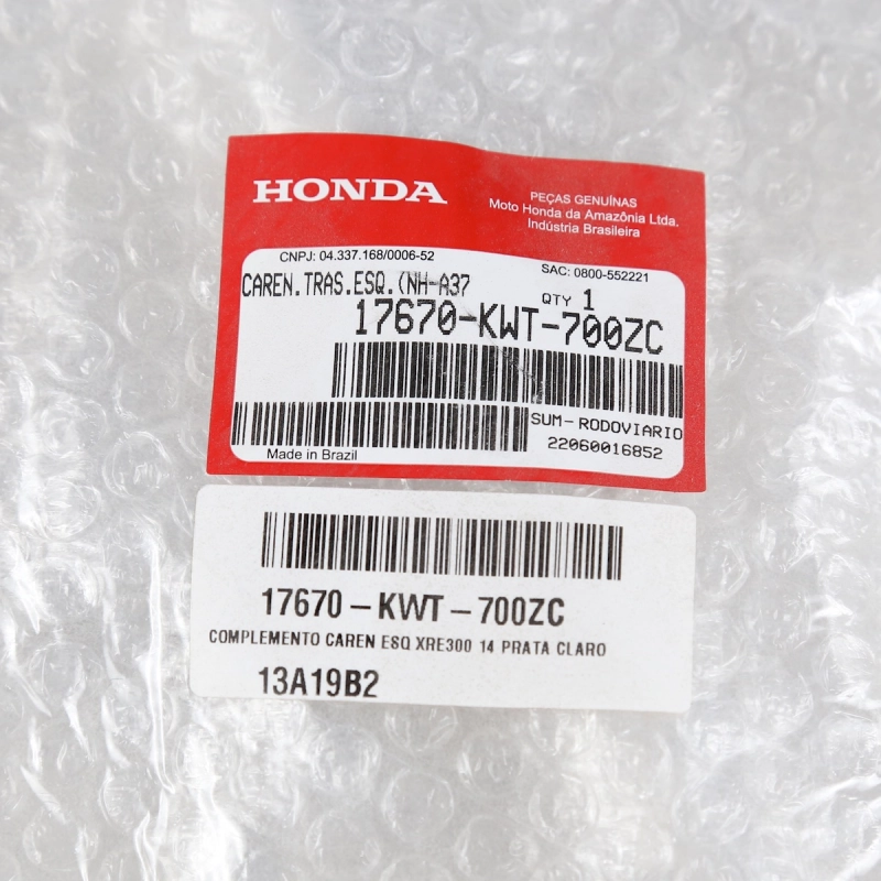 O complemento de carenagem esquerda original Honda tem a função de realizar o acabamento e a proteção do conjunto lateral da motocicleta, auxiliando na fixação e no alinhamento das carenagens. Produzido conforme o padrão original de fábrica, garante encaixe perfeito, resistência e acabamento adequado, sem necessidade de adaptações.