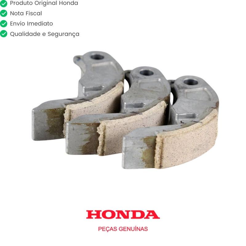 Conjunto de sapatas de embreagem original Honda, responsável pelo acoplamento progressivo do sistema CVT da PCX 150. As sapatas garantem arrancadas suaves, operação estável e transmissão eficiente de potência, mantendo o desempenho original da motocicleta e oferecendo longa durabilidade.