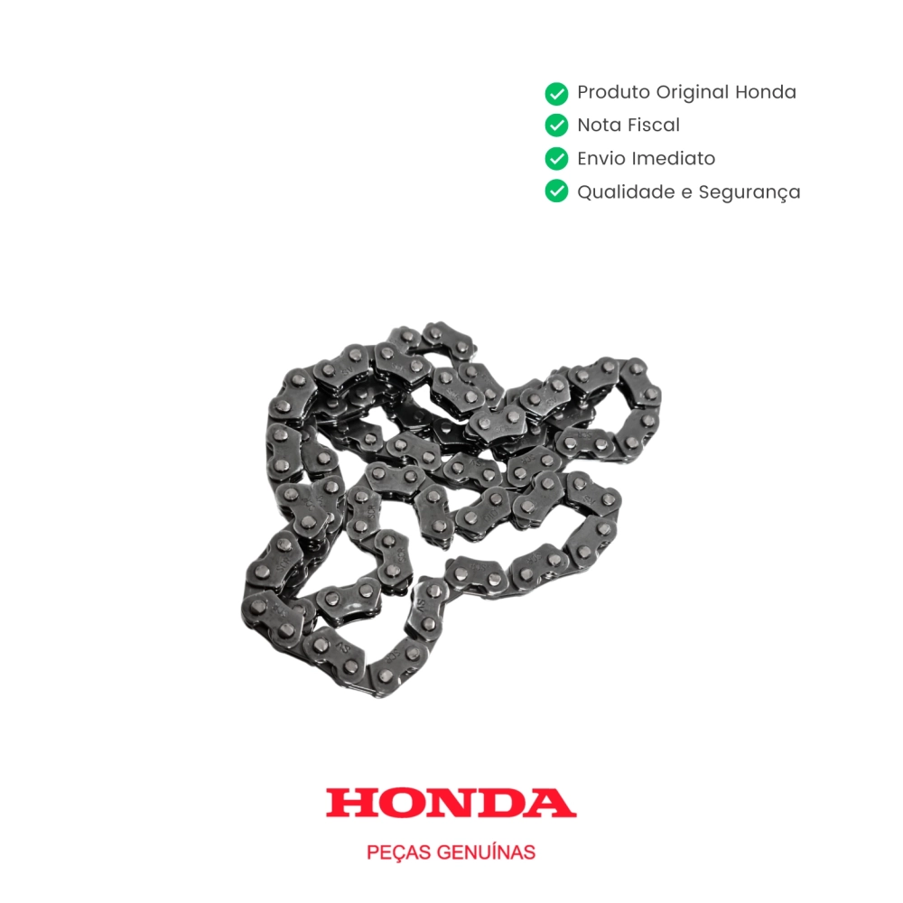 Corrente de comando original Honda, responsável por transmitir o movimento do virabrequim ao comando de válvulas, garantindo o sincronismo correto do motor. Peça essencial para o funcionamento adequado, desempenho confiável e durabilidade do conjunto mecânico. Fabricada conforme os rigorosos padrões de qualidade Honda, assegura encaixe perfeito e funcionamento conforme especificação de fábrica.