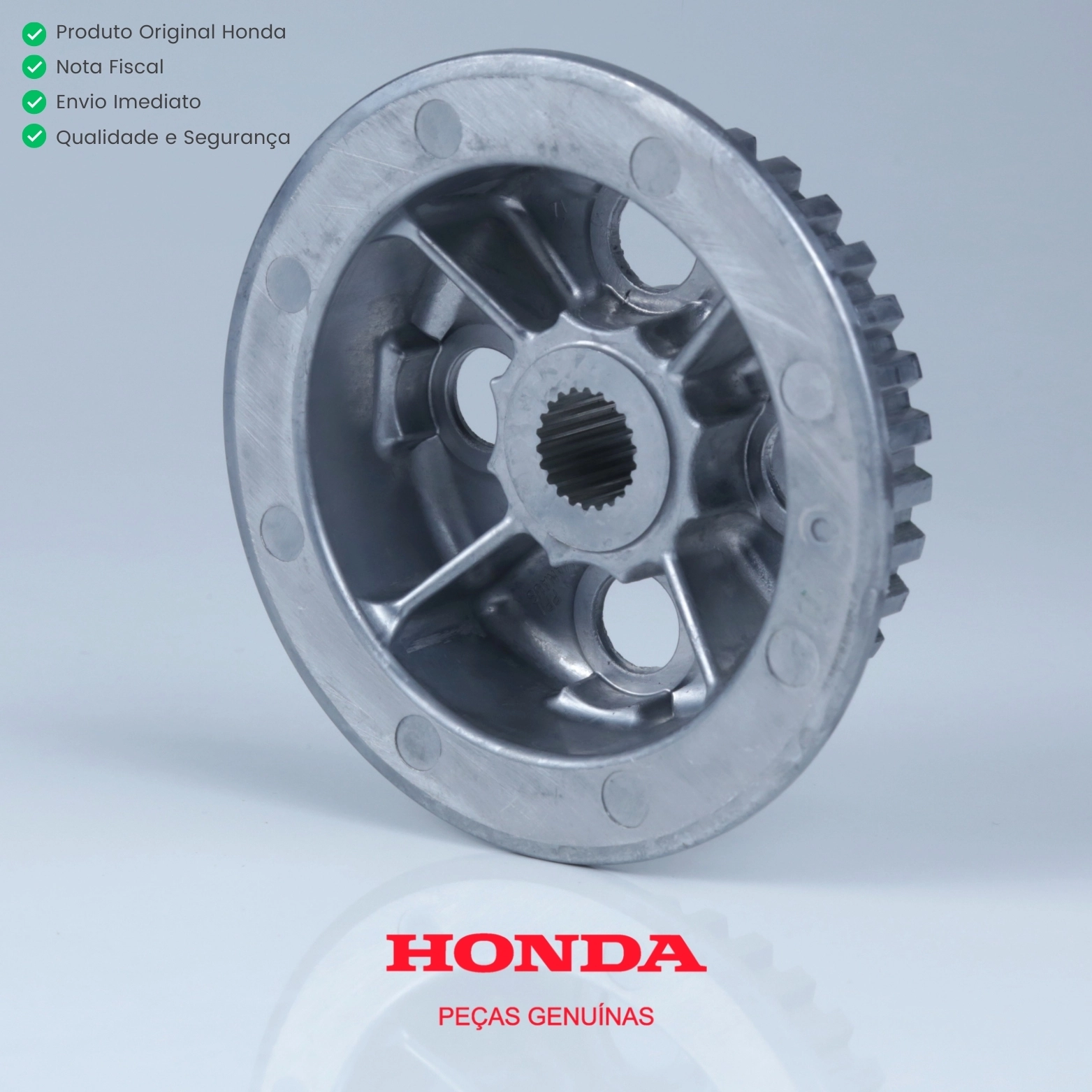 Cubo central da embreagem original Honda, componente essencial para o funcionamento correto do conjunto de embreagem. Responsável pela fixação e transmissão de movimento entre os discos e separadores, garante desempenho, durabilidade e engates mais suaves, mantendo o padrão de qualidade da montadora.