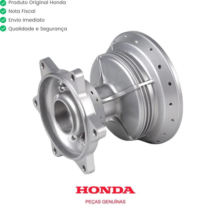 O cubo de roda traseira Original Honda HAMP é responsável por suportar o conjunto da roda, garantindo estabilidade, segurança e perfeito funcionamento do sistema de transmissão e frenagem. Produzido conforme o padrão de fábrica, oferece alta resistência e durabilidade.