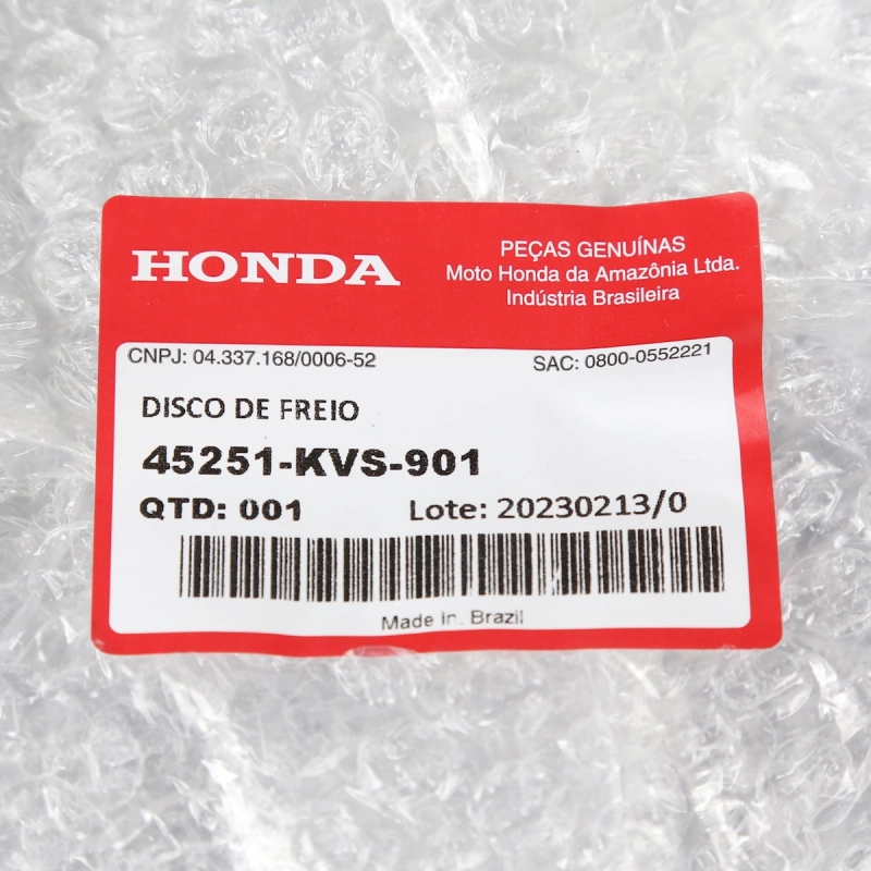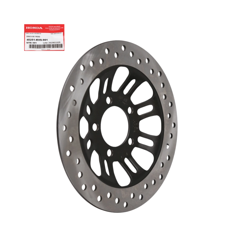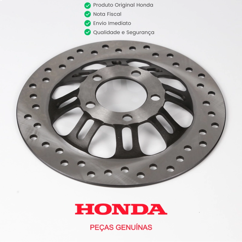 O disco de freio dianteiro original Honda é responsável por garantir frenagens seguras, eficientes e estáveis, sendo um componente essencial do sistema de freio da motocicleta.