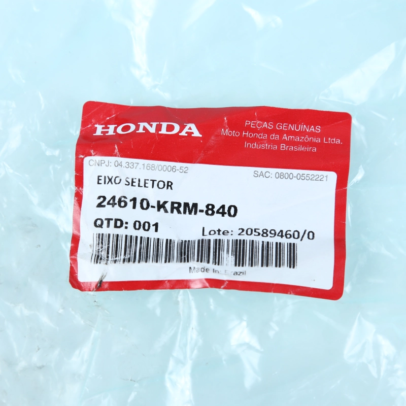 Eixo do pedal de câmbio original Honda, responsável por acionar o sistema de marchas, garantindo engates firmes, precisos e suaves. Produzido com aço de alta resistência e usinagem de precisão, proporciona durabilidade, desempenho e encaixe perfeito, mantendo o funcionamento original da motocicleta.