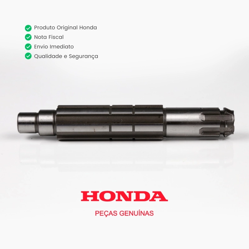 Eixo do pinhão secundário original Honda, componente essencial do conjunto de câmbio, responsável por transmitir a força entre as engrenagens internas e garantir o funcionamento suave da transmissão. Fabricado com materiais de alta resistência e precisão técnica, assegura durabilidade, desempenho e encaixe perfeito.
