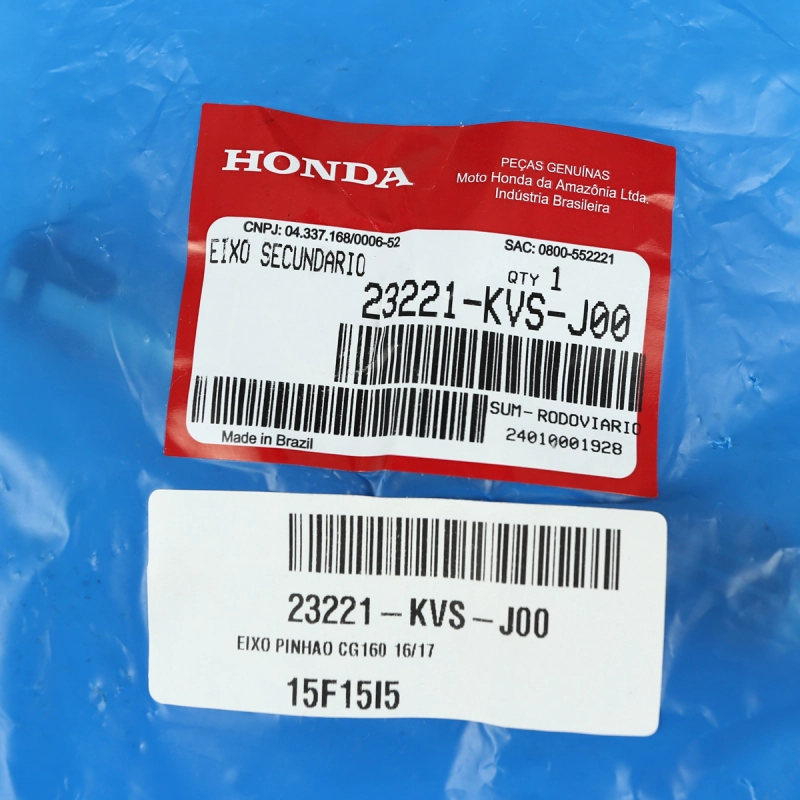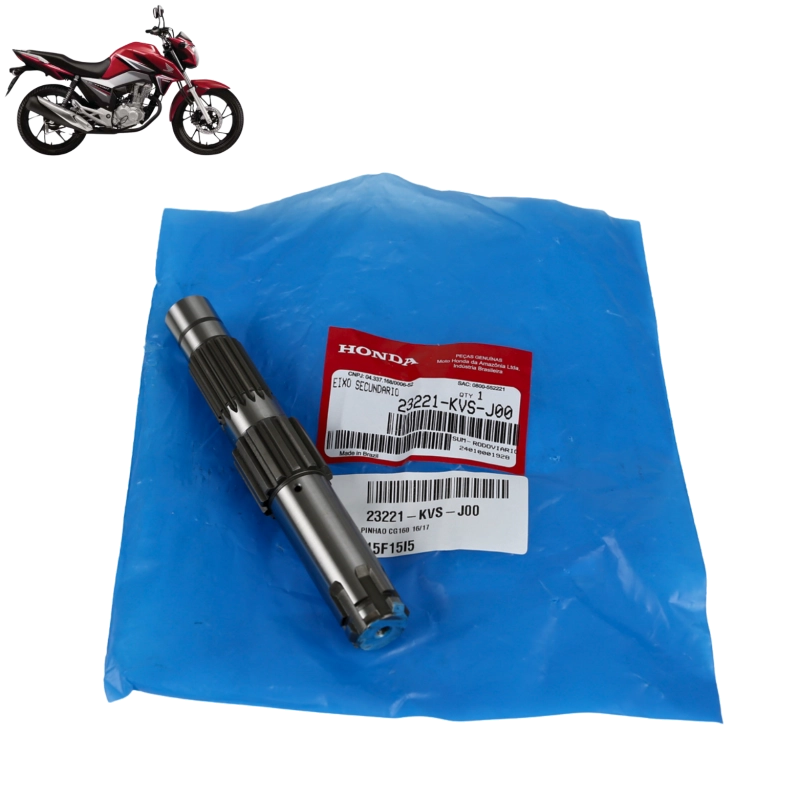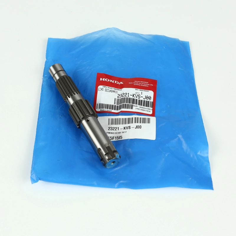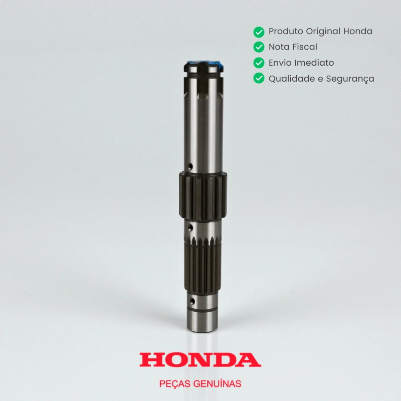 Eixo do pinhão secundário original Honda, componente responsável por transmitir a força entre as engrenagens internas do câmbio, garantindo funcionamento preciso e suave da transmissão. Produzido com materiais de alta resistência e usinagem precisa, oferece durabilidade, confiabilidade e encaixe perfeito conforme o padrão de fábrica.