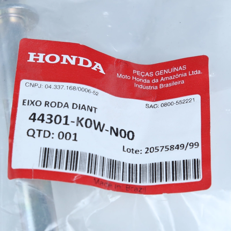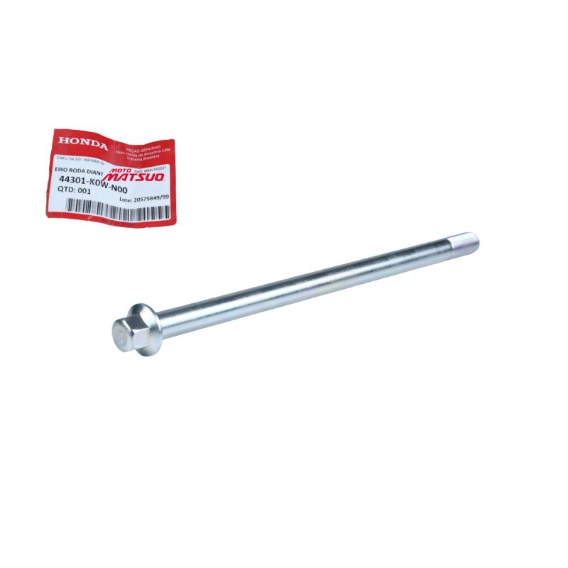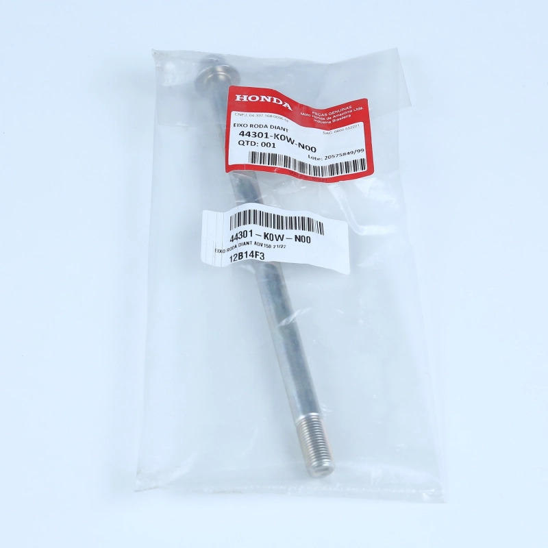 O eixo da roda dianteira original Honda é responsável por garantir a fixação correta da roda, mantendo o alinhamento, a estabilidade e a segurança durante a pilotagem.
