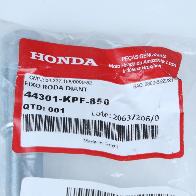 O eixo da roda dianteira original Honda é responsável por garantir a fixação correta da roda, mantendo alinhamento, estabilidade e segurança durante a pilotagem.