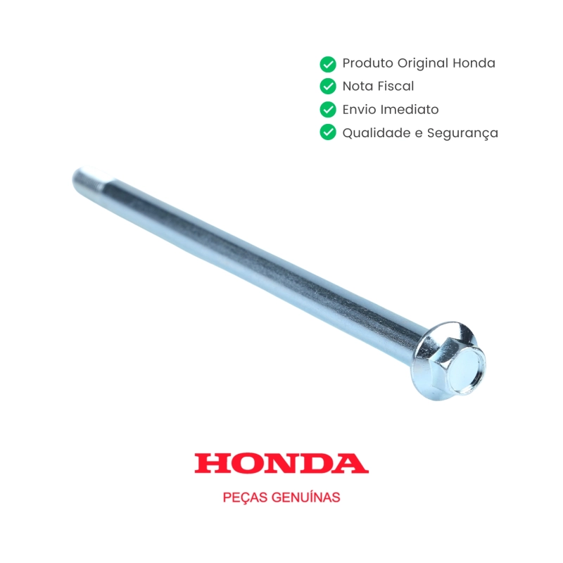 O eixo da roda dianteira original Honda é responsável por garantir a fixação correta da roda, mantendo alinhamento, estabilidade e segurança durante a pilotagem.