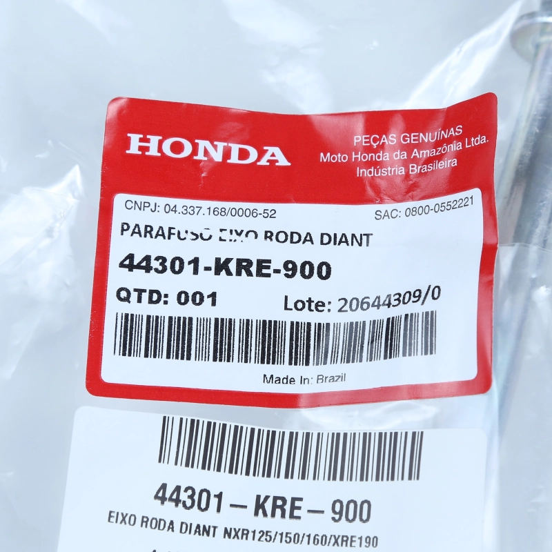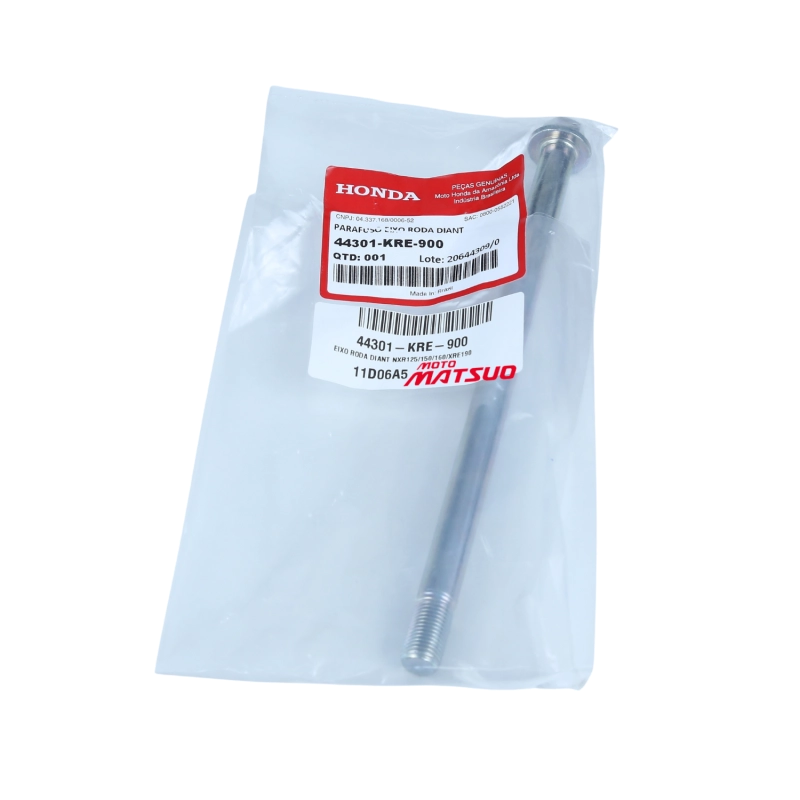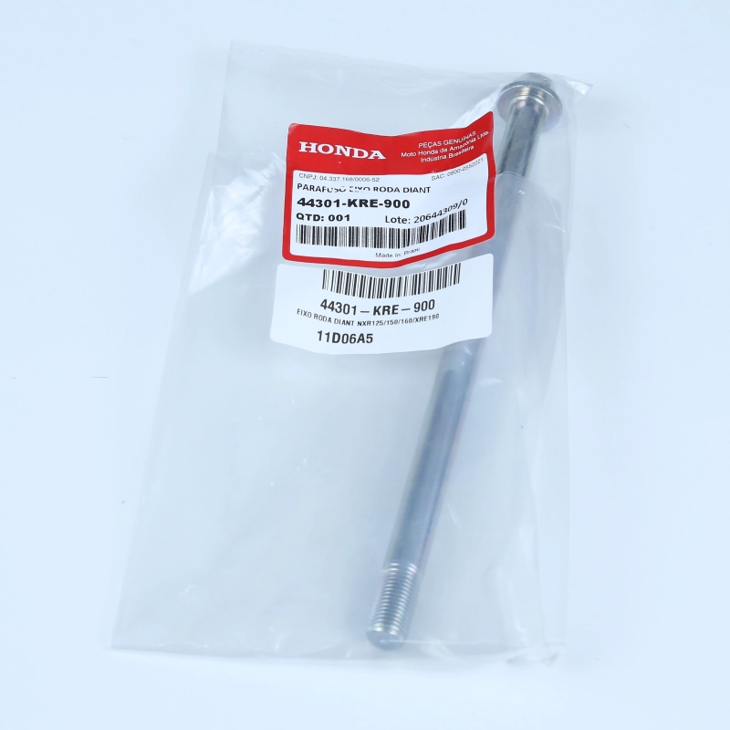 O eixo da roda dianteira original Honda é responsável por garantir a fixação correta da roda, mantendo alinhamento, estabilidade e segurança durante a pilotagem.