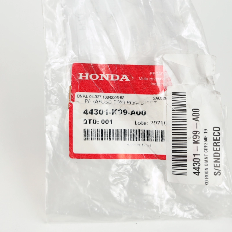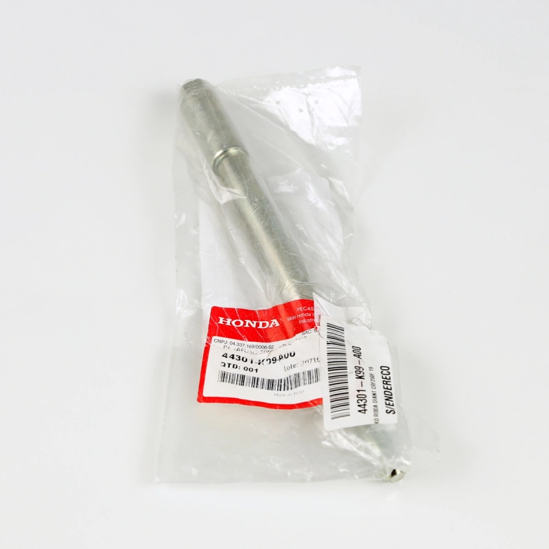 O eixo da roda dianteira original Honda é responsável por garantir a fixação correta da roda, mantendo alinhamento, estabilidade e segurança durante a pilotagem.