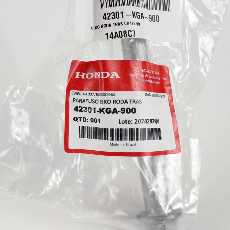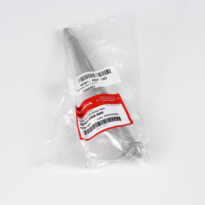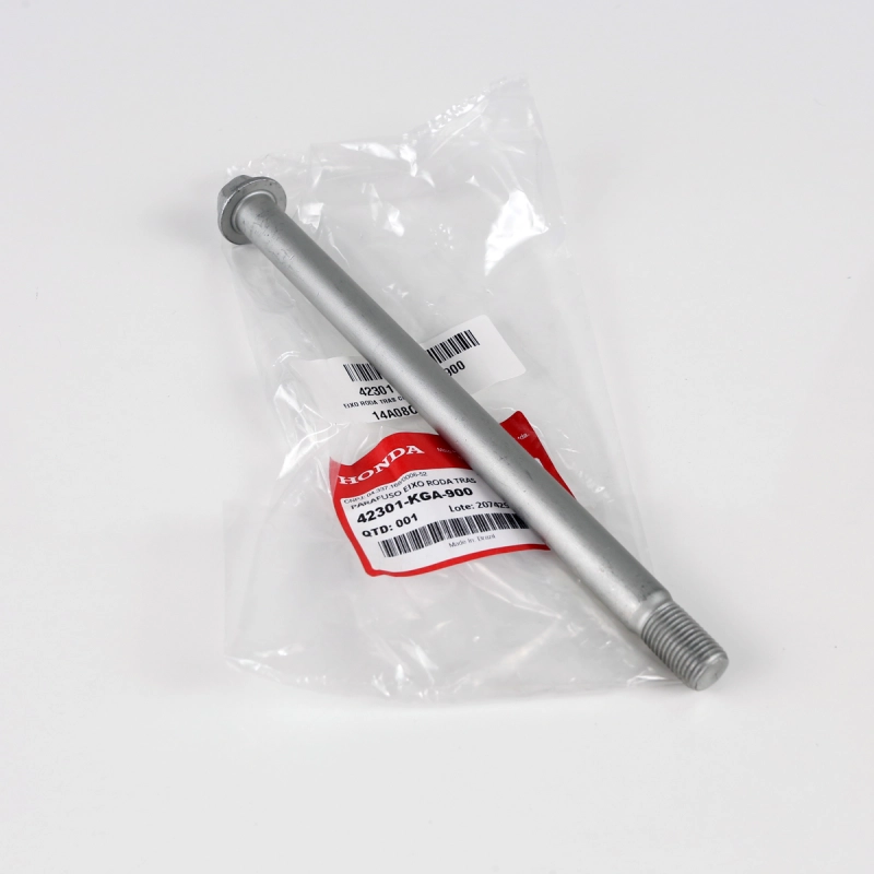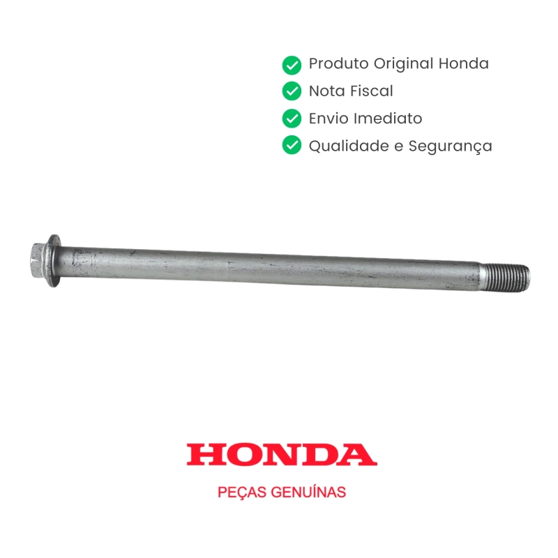 O eixo da roda traseira original Honda é responsável pela fixação correta da roda, garantindo alinhamento preciso, estabilidade e segurança durante a pilotagem.