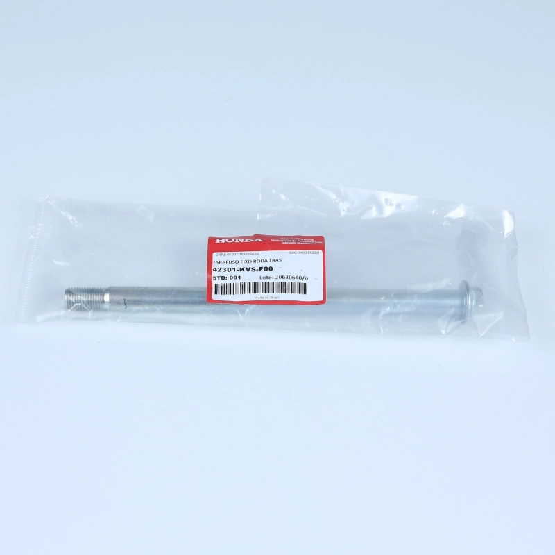 O eixo da roda traseira original Honda é responsável pela fixação correta da roda, garantindo alinhamento preciso, estabilidade e segurança durante a pilotagem.