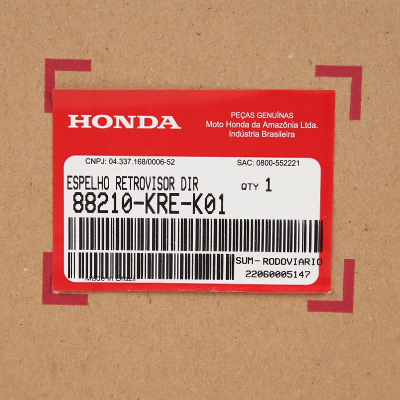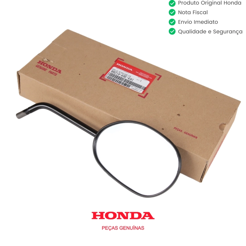 O espelho retrovisor direito é responsável por garantir visibilidade traseira ao piloto, proporcionando mais segurança durante a condução. Por ser uma peça original Honda, oferece encaixe perfeito, alta durabilidade e padrão de fábrica.
