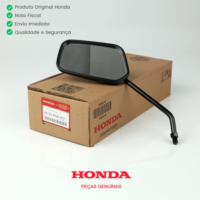 O espelho retrovisor esquerdo é responsável por garantir visibilidade traseira ao piloto, proporcionando mais segurança durante a condução. Por ser uma peça original Honda, oferece encaixe perfeito, alta durabilidade e padrão de fábrica.