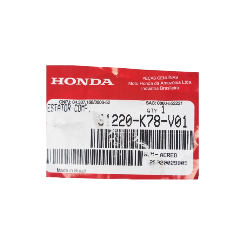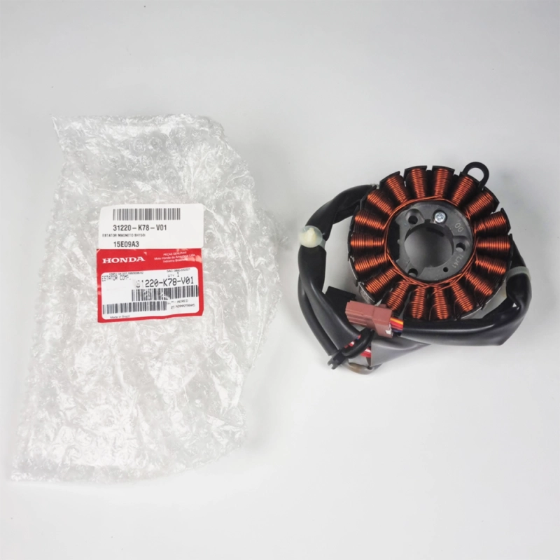 O estator do magneto original Honda é responsável pela geração de energia elétrica da motocicleta, alimentando corretamente o sistema de ignição, iluminação e o carregamento da bateria. Fabricado conforme os padrões de fábrica Honda, garante funcionamento estável, eficiência elétrica e alta durabilidade.