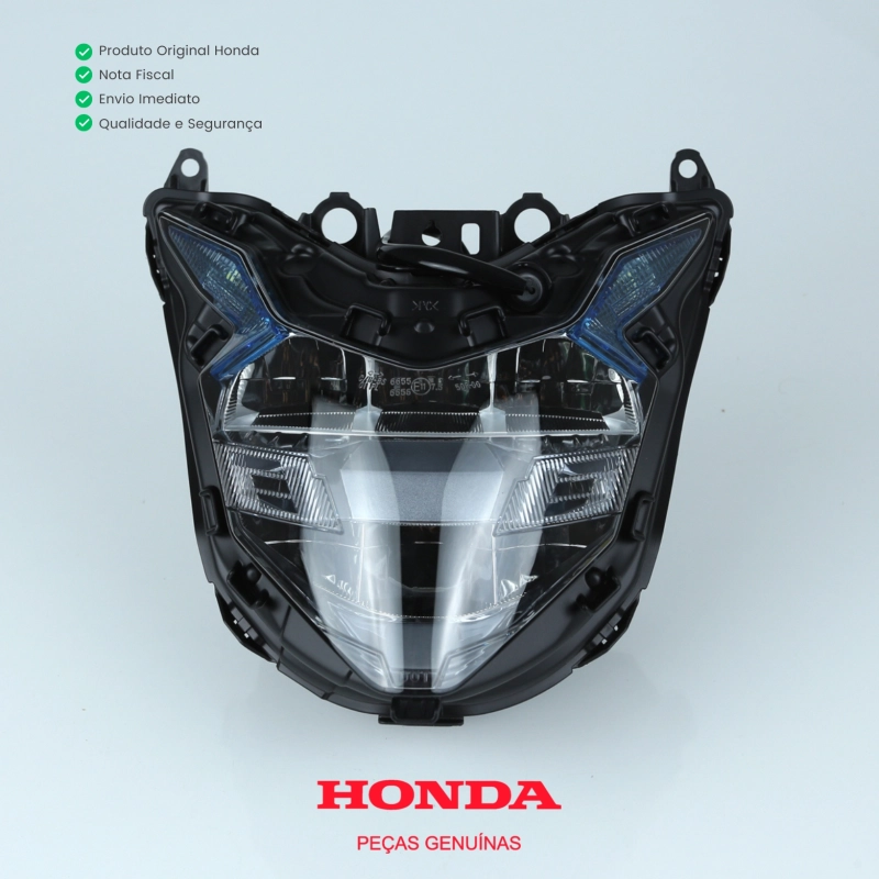 O farol bloco completo original Honda garante iluminação eficiente, segurança e perfeita integração ao conjunto frontal da motocicleta. Desenvolvido conforme os padrões de fábrica Honda, oferece encaixe preciso, excelente acabamento e alta durabilidade.