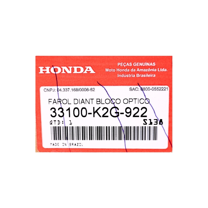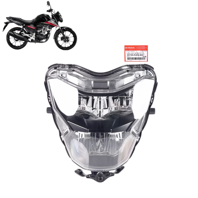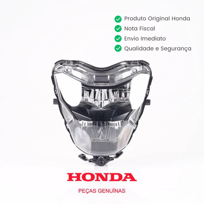 O farol bloco óptico original Honda garante iluminação eficiente, maior segurança na pilotagem e preserva o padrão original da motocicleta. Produzido conforme as especificações de fábrica, oferece excelente foco de luz, durabilidade e encaixe perfeito.