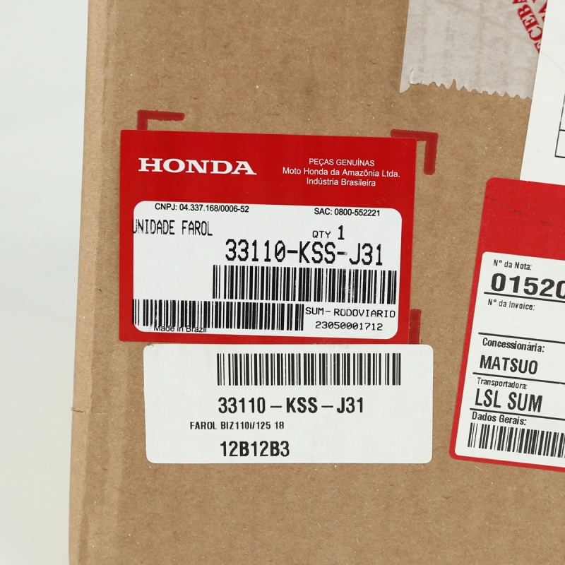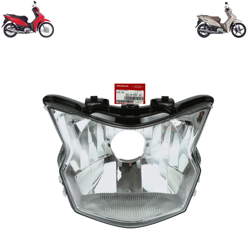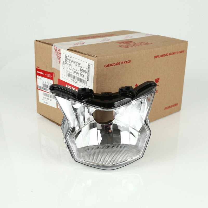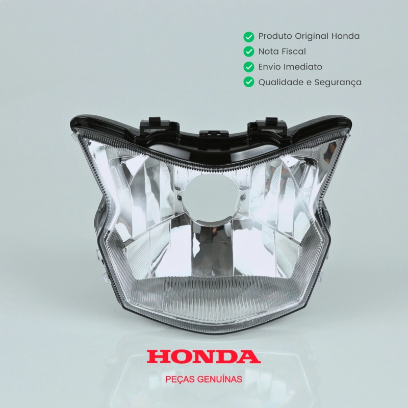 Farol bloco óptico original Honda, projetado para oferecer uma iluminação eficiente e duradoura, mantendo o desempenho e a estética da motocicleta. Fabricado com os mais altos padrões de qualidade Honda, proporciona visibilidade clara e segura.