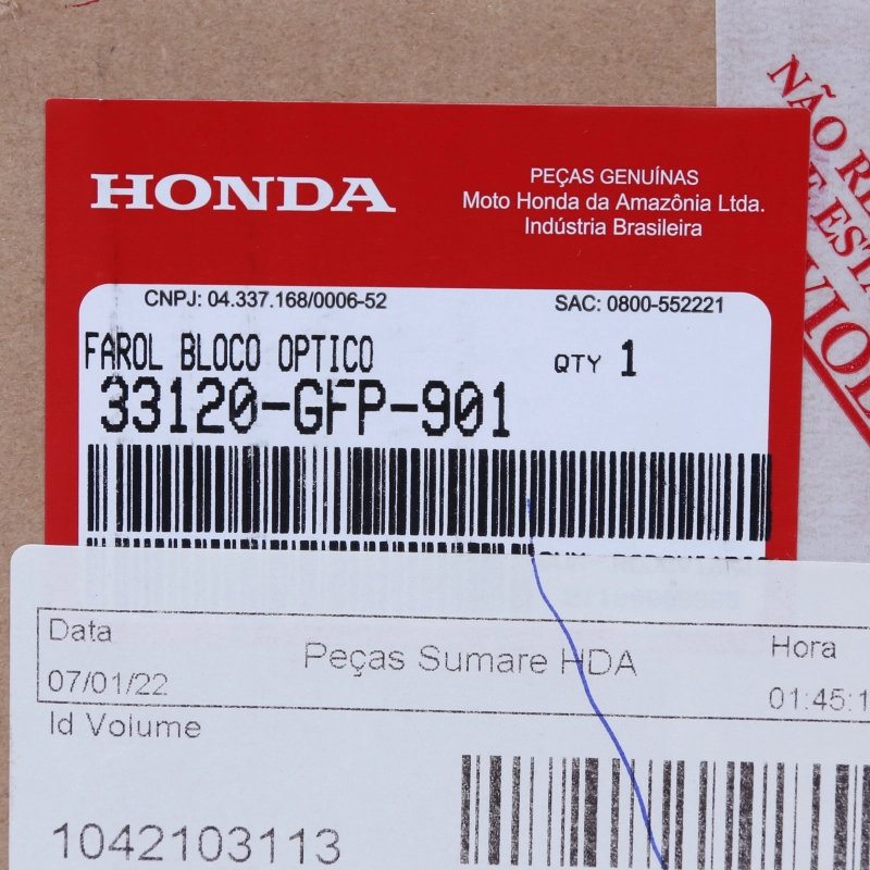 O farol bloco óptico original Honda garante iluminação eficiente, segurança e preservação total do padrão de fábrica da motocicleta. Fabricado conforme as especificações da Honda, oferece excelente durabilidade, encaixe perfeito e acabamento original.