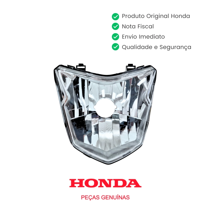 O farol bloco óptico original Honda foi desenvolvido para oferecer iluminação eficiente, segurança e perfeita integração ao conjunto frontal da motocicleta. Produzido conforme os padrões de fábrica Honda, garante encaixe preciso, excelente acabamento e longa durabilidade.