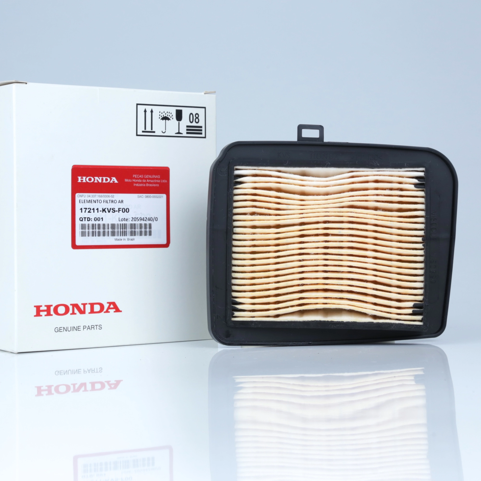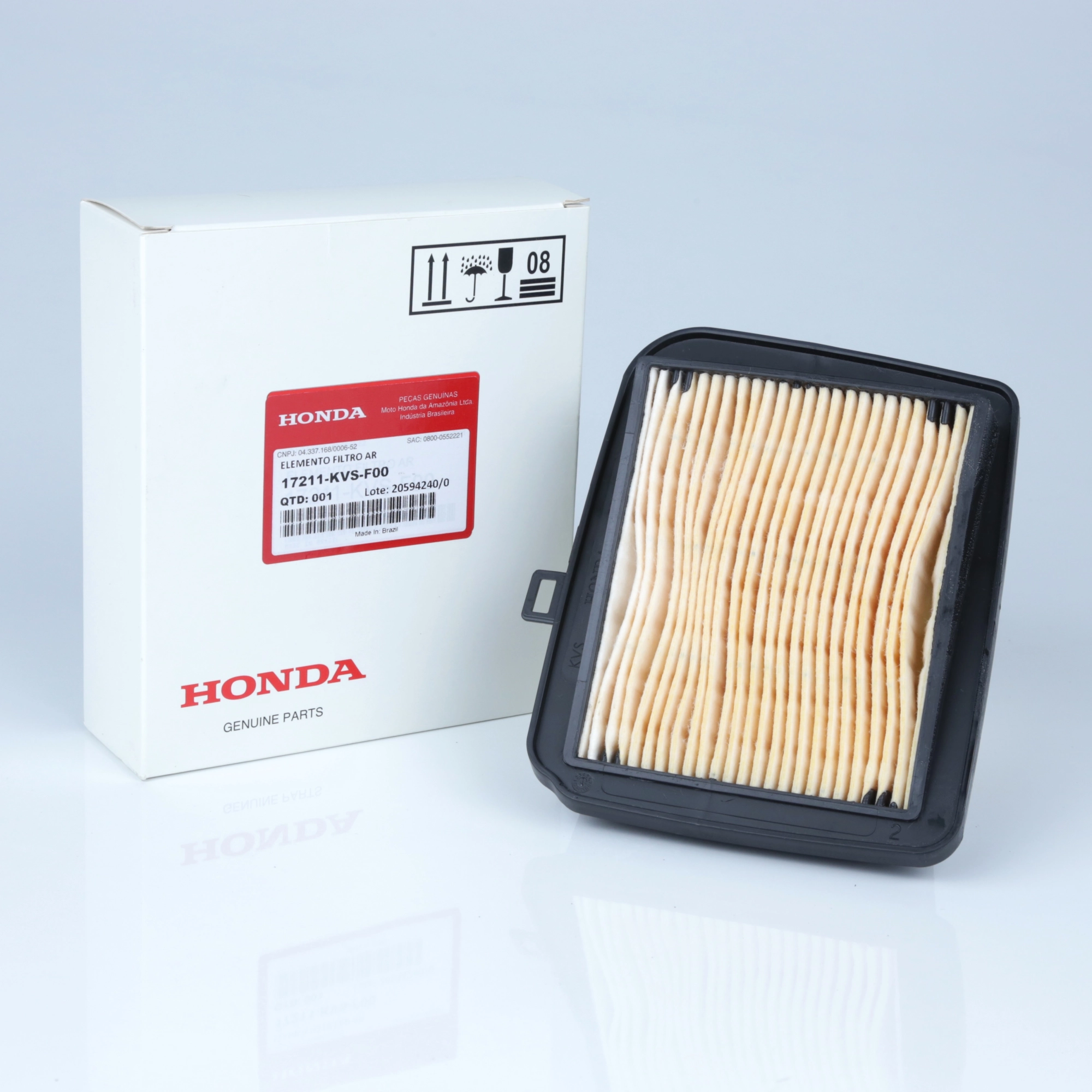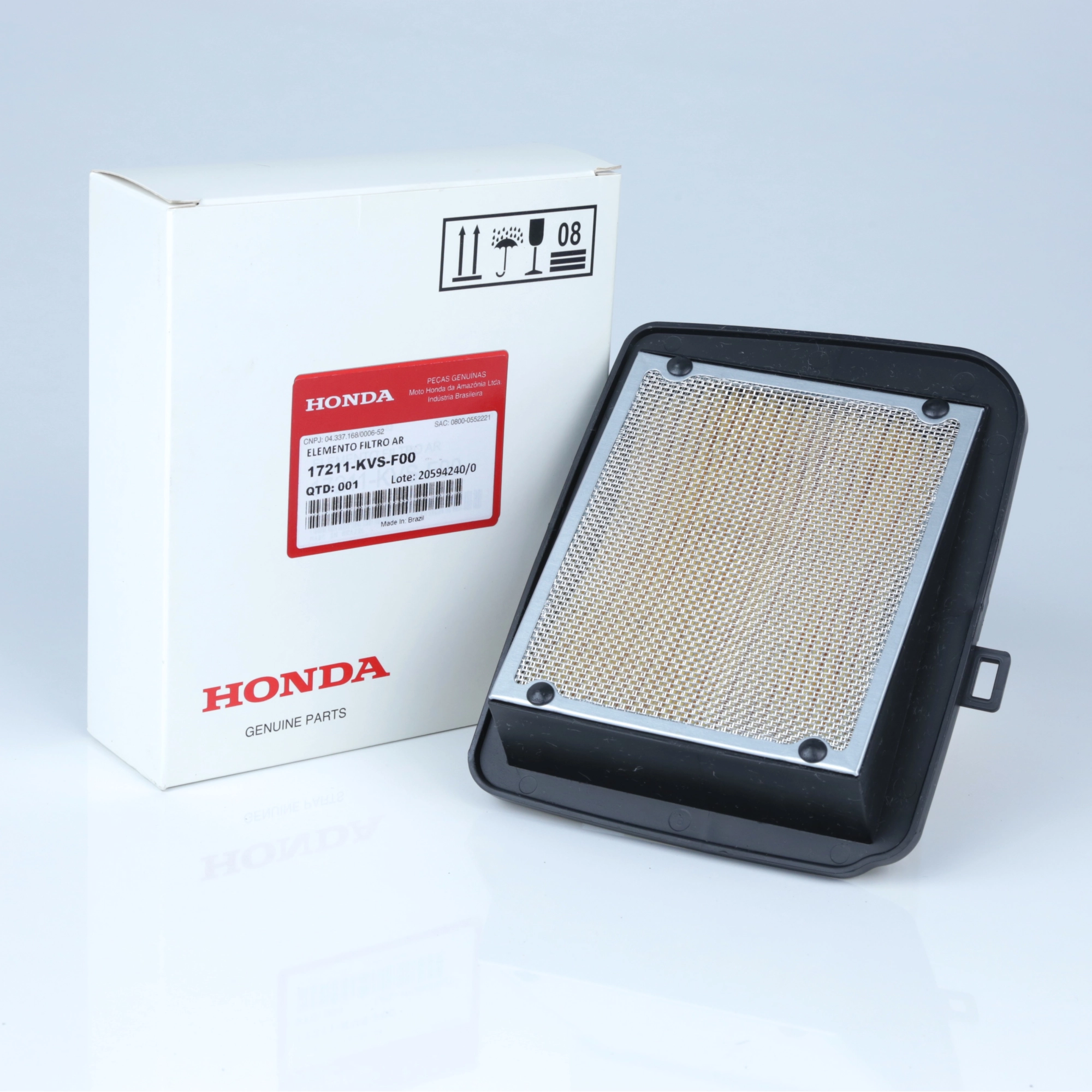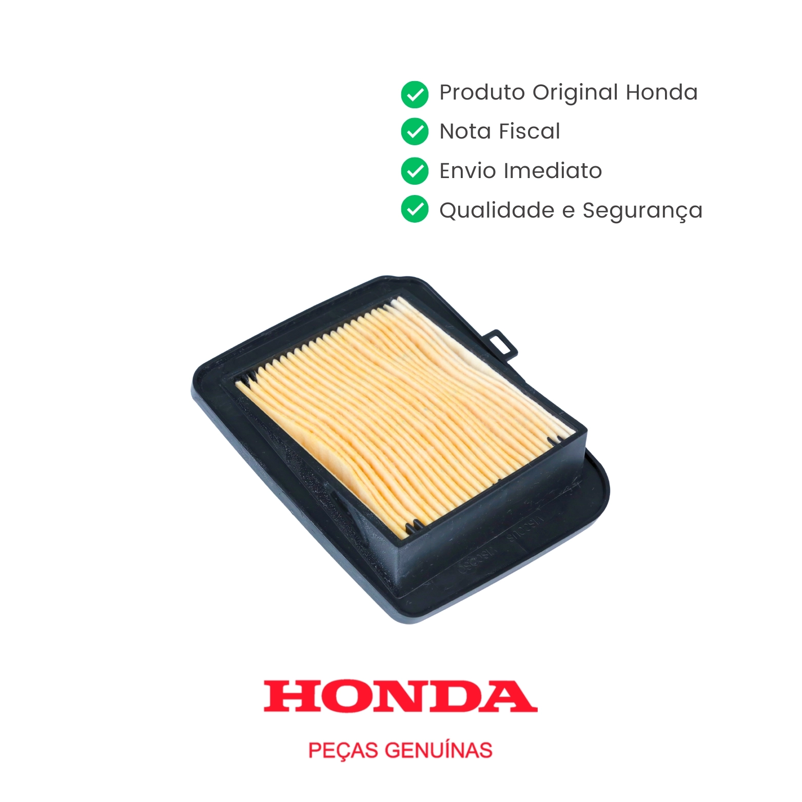 O filtro de ar original Honda é responsável por realizar a filtragem do ar admitido pelo motor, retendo poeira e impurezas, garantindo combustão correta, melhor desempenho e maior durabilidade dos componentes internos. Produzido conforme o padrão original de fábrica, assegura fluxo de ar adequado, encaixe perfeito e funcionamento ideal do motor, sem necessidade de adaptações.