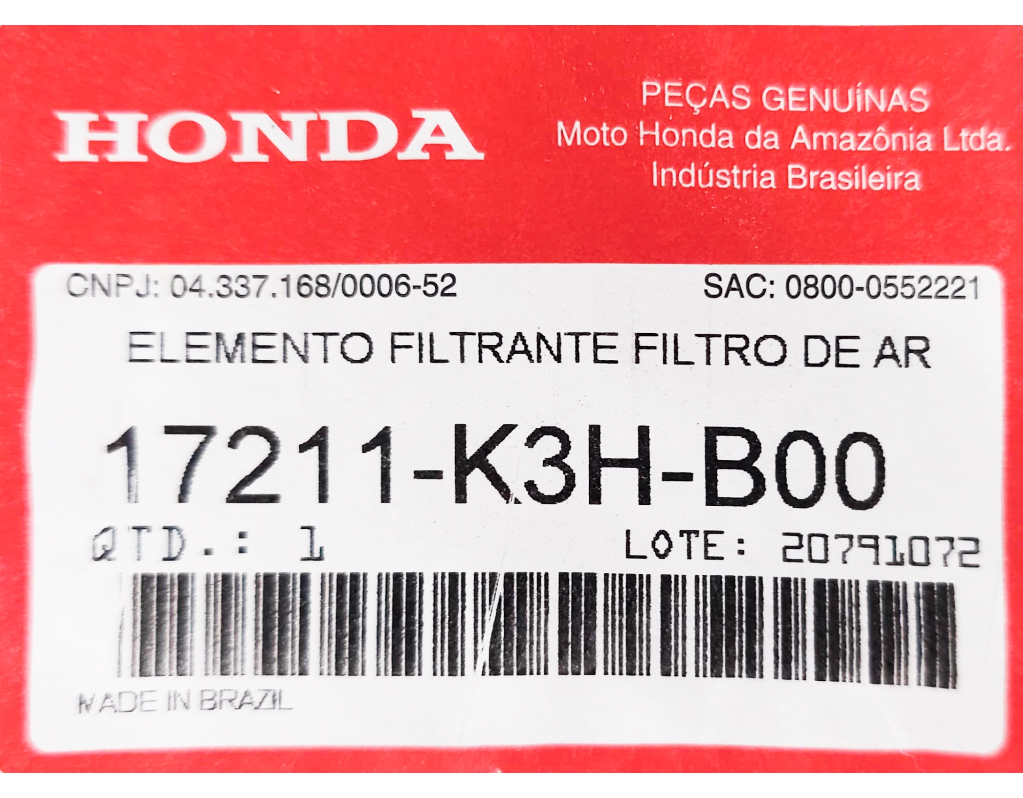 • Produto 100% original Honda