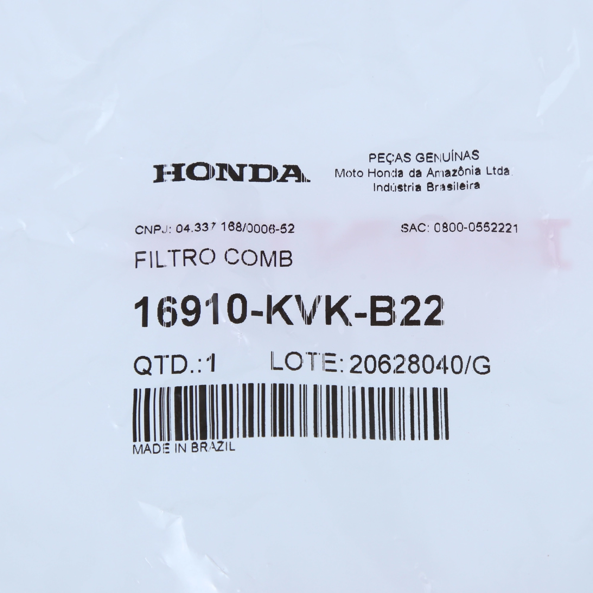 O filtro de combustível original Honda é responsável por reter impurezas presentes no combustível antes que cheguem ao sistema de injeção eletrônica, protegendo a bomba, o injetor e garantindo funcionamento correto do motor. Produzido conforme o padrão original de fábrica, assegura filtragem eficiente, vazão adequada e maior durabilidade dos componentes do sistema de alimentação, sem necessidade de adaptações.