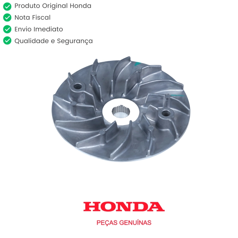 Flange da correia do motor com ventoinha original Honda, responsável por garantir a ventilação adequada do sistema CVT e o funcionamento correto da correia de transmissão. Produzida conforme padrão de fábrica, oferece durabilidade, encaixe perfeito e desempenho confiável.